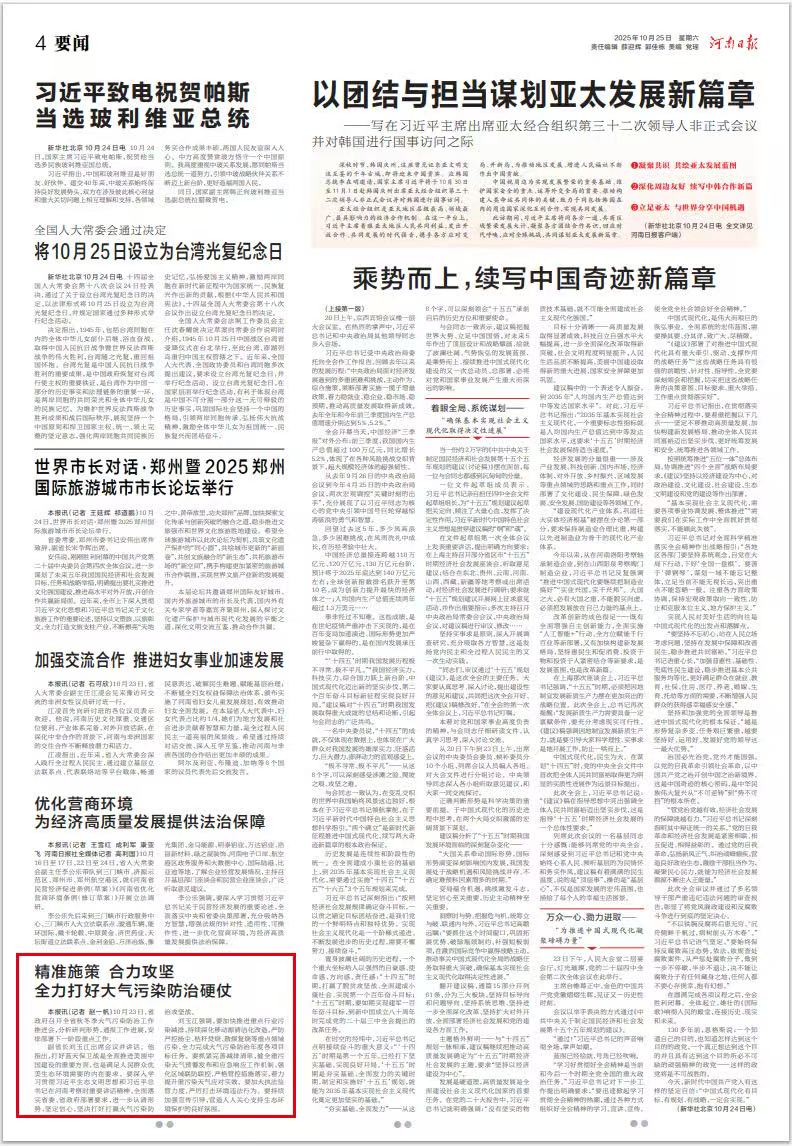 10月23日,省政府召开全省秋冬季大气污染防治工作推进会,分析研判形势,通报工作进展,安排部署下一阶段重点工作。 副省长刘玉江出席会议并讲话。他指出,打好蓝天保卫战是全面推进美丽中国建设的重要方面,也是满足人民群众优美生态环境需要的内在要求。要深入学习贯彻习近平生态文明思想和习近平总书记在河南考察时重要讲话精神,全面落实省委、省政府部署要求,进一步认清形势、坚定信心,坚决打好打赢大气污染防治攻坚战。 刘玉江强调,要加快推进重点行业污染减排,持续深化移动源清洁化改造,严防严控扬尘、秸秆焚烧、散煤复烧等重点领域污染,全力完成大气污染防治年度各项目标任务。要抓紧完善减排清单,健全重污染天气预警发布和应急响应工作机制,强化区域联防联控,严格管控措施落实,着力提升重污染天气应对实效。要加大执法监管力度,严厉打击环境违法行为。要持续加强宣传引导,营造人人关心支持生态环境保护的良好氛围。