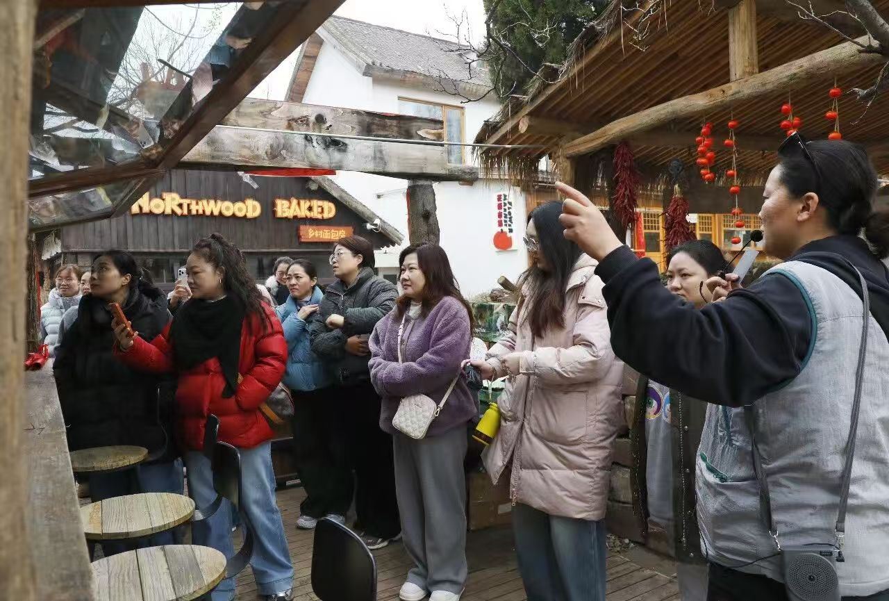 抵达西溪岭悠享乡村后,大家在工作人员的引导下漫步村落,实地感受乡村生态治理、垃圾分类、庭院绿化等给乡村带来的新变化。树木吐绿、远山如黛、古街悠然,一幅生态与人文交融、绿水青山转化为金山银山的美丽乡村画卷尽收眼底。