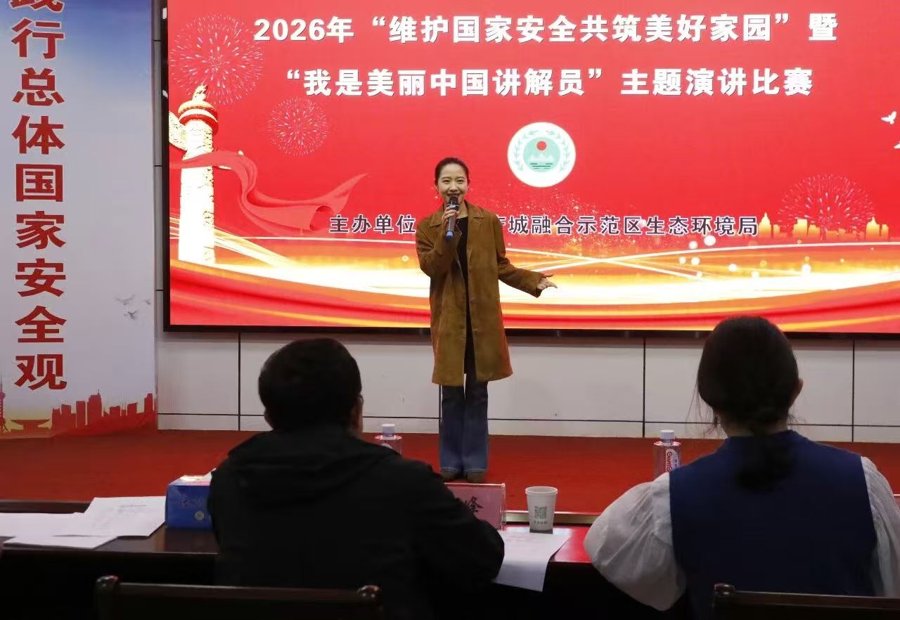 为积极践行总体国家安全观、厚植生态安全理念,讲好生态环境保护故事、传递美丽中国建设声音,3月19日,济源生态环境局举办2026年“维护国家安全共筑美好家园”暨“我是美丽中国讲解员”主题演讲比赛。来自局机关各科室、各二级机构及辖区重点企业的26组选手同台竞技,共话生态安全与家国情怀。局长杨峰参加活动。