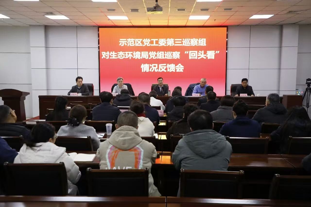 根据示范区党工委巡察工作安排,2月5日下午,示范区党工委第三巡察组对生态环境局党组巡察“回头看”情况反馈会议召开。示范区纪工委常务副书记、监察工委副主任、巡察工作领导小组成员牛明刚出席会议,对巡察整改工作提出具体要求。示范区党工委第三巡察组组长牛友谊向生态环境局党组反馈巡察意见。生态环境局党组书记赵寒冬主持会议并作表态发言。